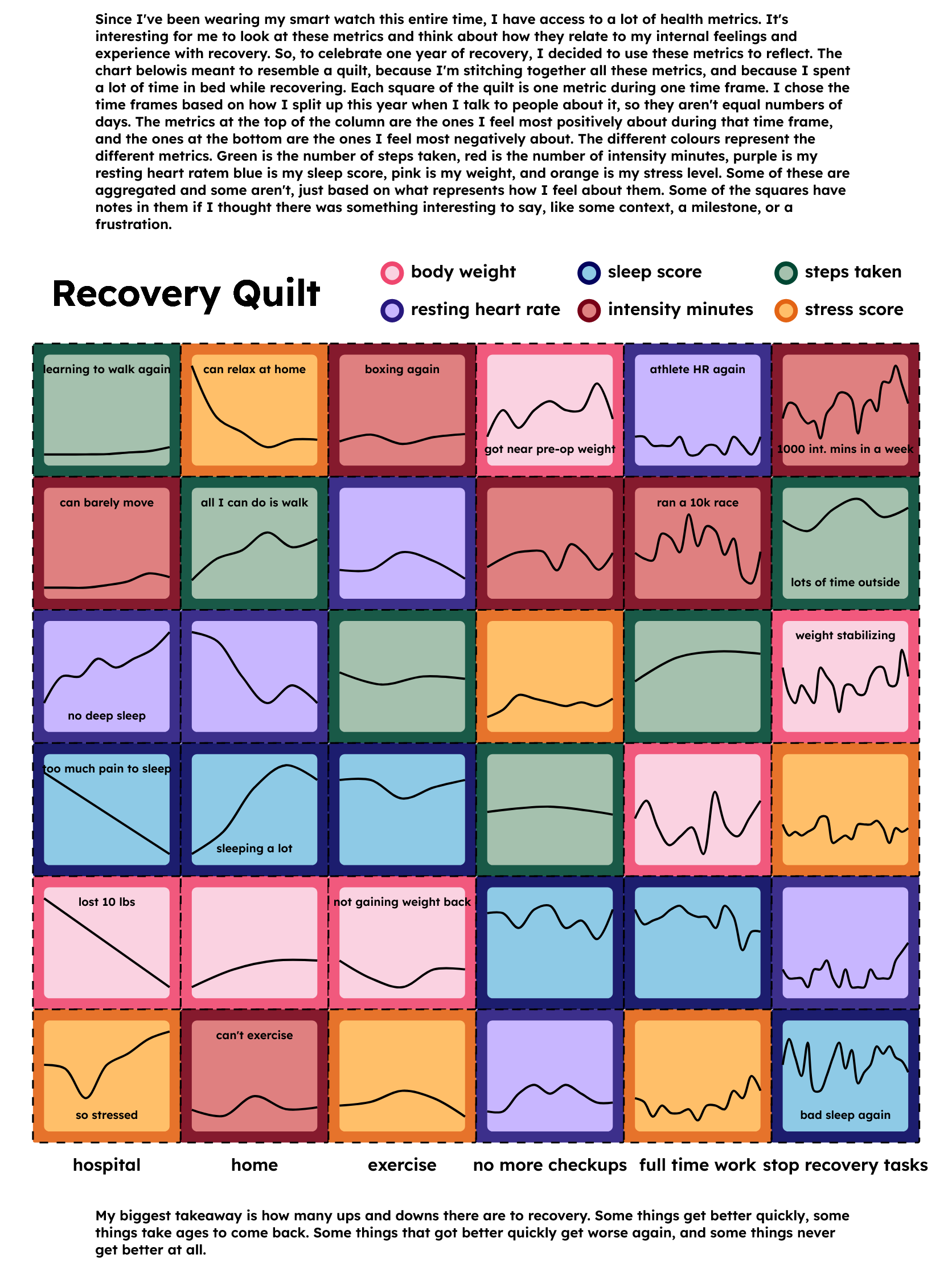 My research interests focus on how people visually communicate data and information in engaging, artistic, and informative ways. My interests have lead to work in smaller, more local areas such as museums and fitness groups, but I'm also interested in national and global issues such as politics, public transit, and the environment.